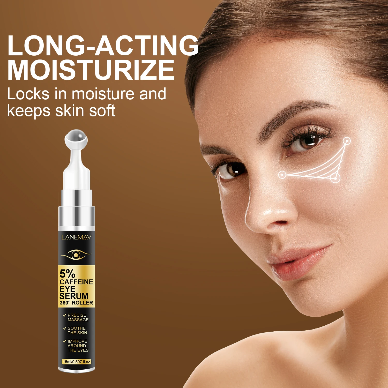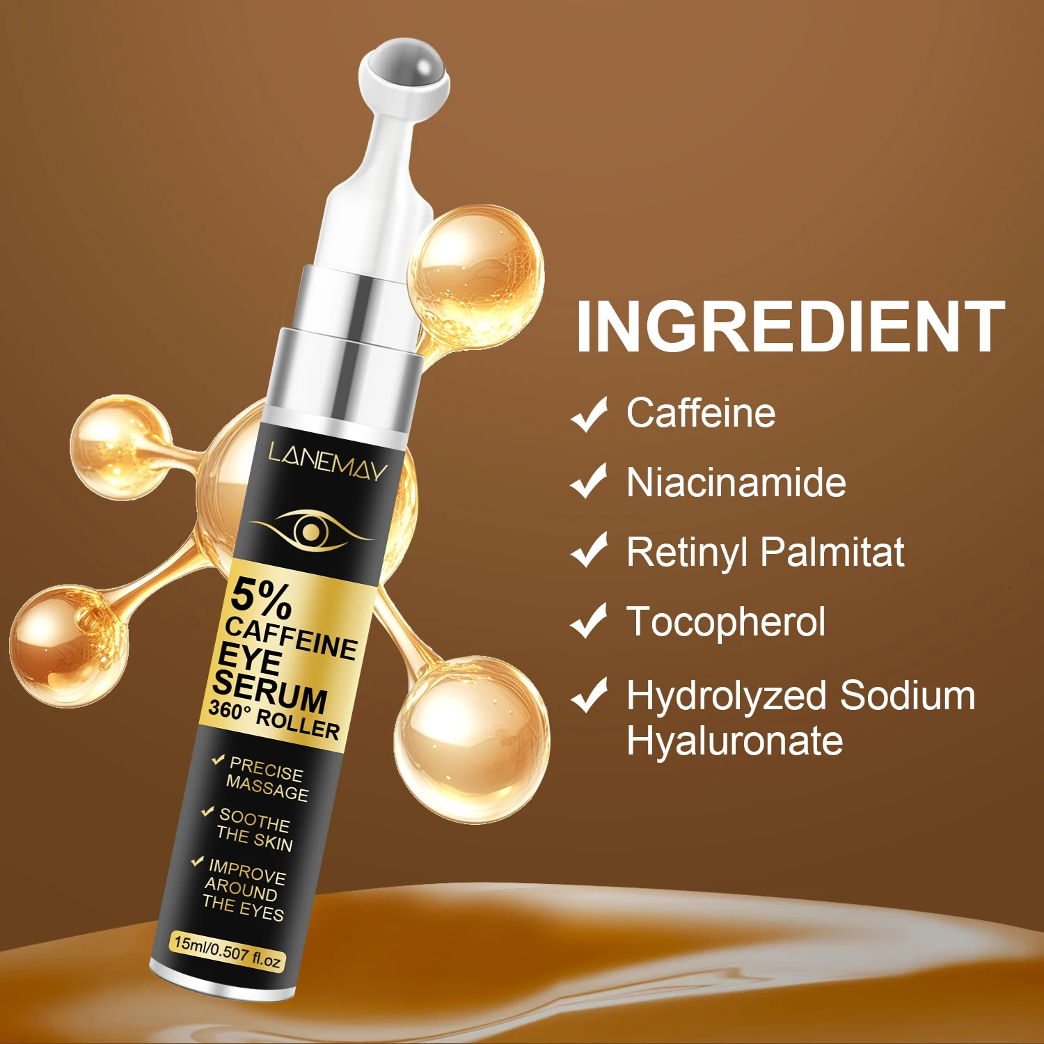 Luxury 5% Caffeine Eye Serum Roller – Energize, Firm, Illuminate