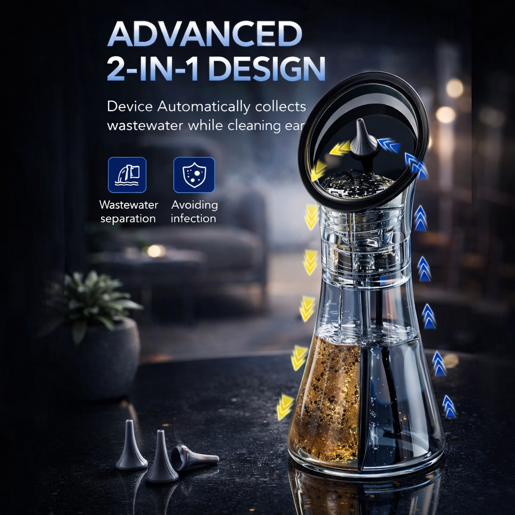 Elevate your hygiene routine with this refined 2-in-1 electric ear cleaning system, engineered for effortless and hygienic care. Featuring intelligent automatic water circulation, it loosens and flushes earwax simultaneously, minimizing mess while maximizing effectiveness.
